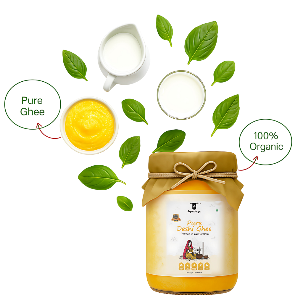 Agrachaya is marked by quality. Our Desi Ghee comes from fresh, organic milk extracted from the best dairy farms. Known in the market for rich flavours, nutrients, and purity, our ghee is extracted from butter through the slow-cooked traditional methods without adding artificial colors and ingredients.
